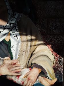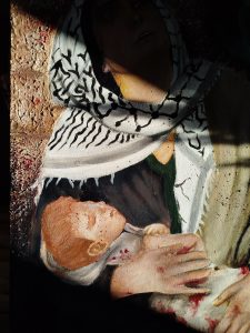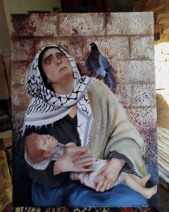 شرح اللوحة : اللوحة تجسيد مؤثر للمأساة والمعاناة الناتجة عن الصراع.